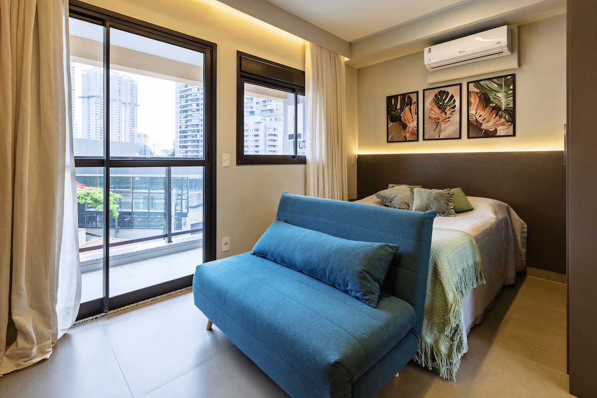 豪華單間公寓,位於 Oscar Freire 街 現代、精緻且設備齊全,位於聖保羅最著名的奢侈品商店街。位於24樓的單間公寓,正面朝外,可欣賞到保利斯塔大道的壯麗景色。 設備齊全,配有55英寸電視、Vivo Fibra 200 Wifi網絡、有線電視、安靜的空調、咖啡機、電磁爐和迷你吧、自動遮光窗簾、便攜式衣物蒸汽機、廚房用具、吹風機、柔軟的床單和毛巾、肥皂和洗髮水/護髮素套裝。
