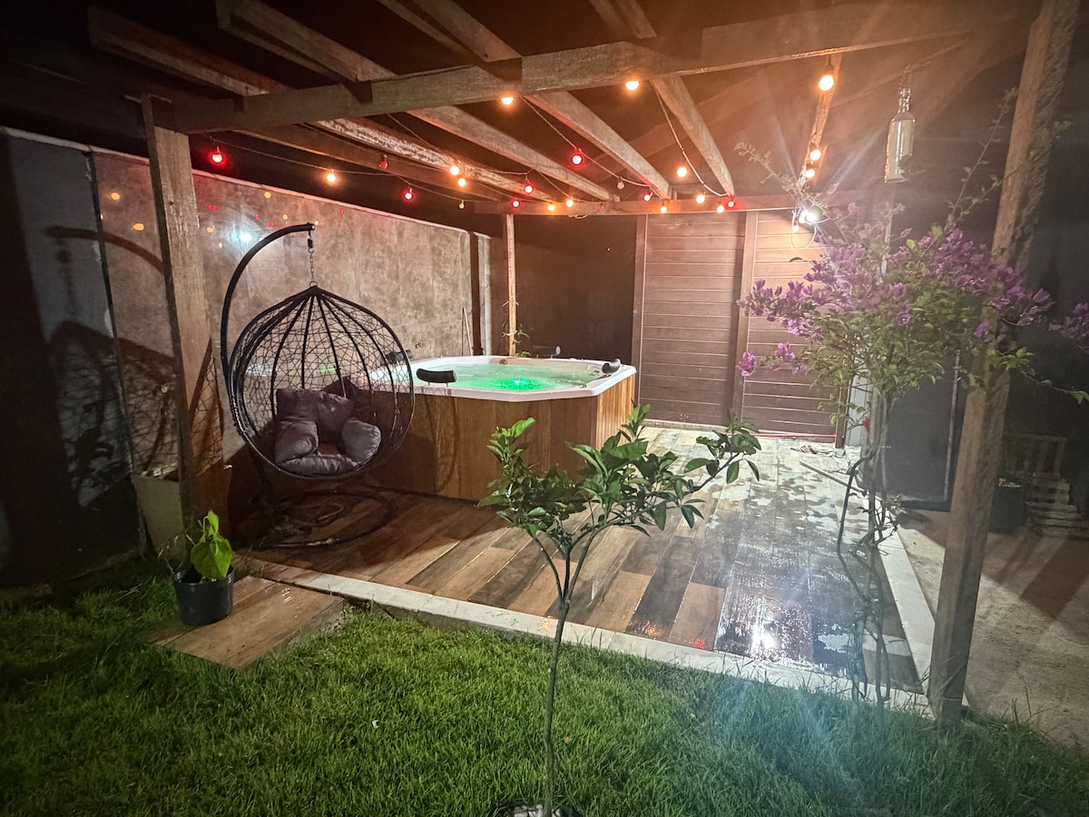 小屋位於一個非常安靜的地方,是您與家人一起休息或與朋友一起放鬆的完美地方。距離Forte海灘、日本島和Conchas海灘5公里。小屋公寓由兩個泳池組成,一個是兒童泳池,另一個是成人泳池,我們有一個帶燒烤區的區域。小屋內有一張雙人床和一張雙層床,我們有冰箱、爐子、空調和風扇、Wi-Fi,以及咖啡機、鍋具等用具。 附近有麵包店和迷你市場