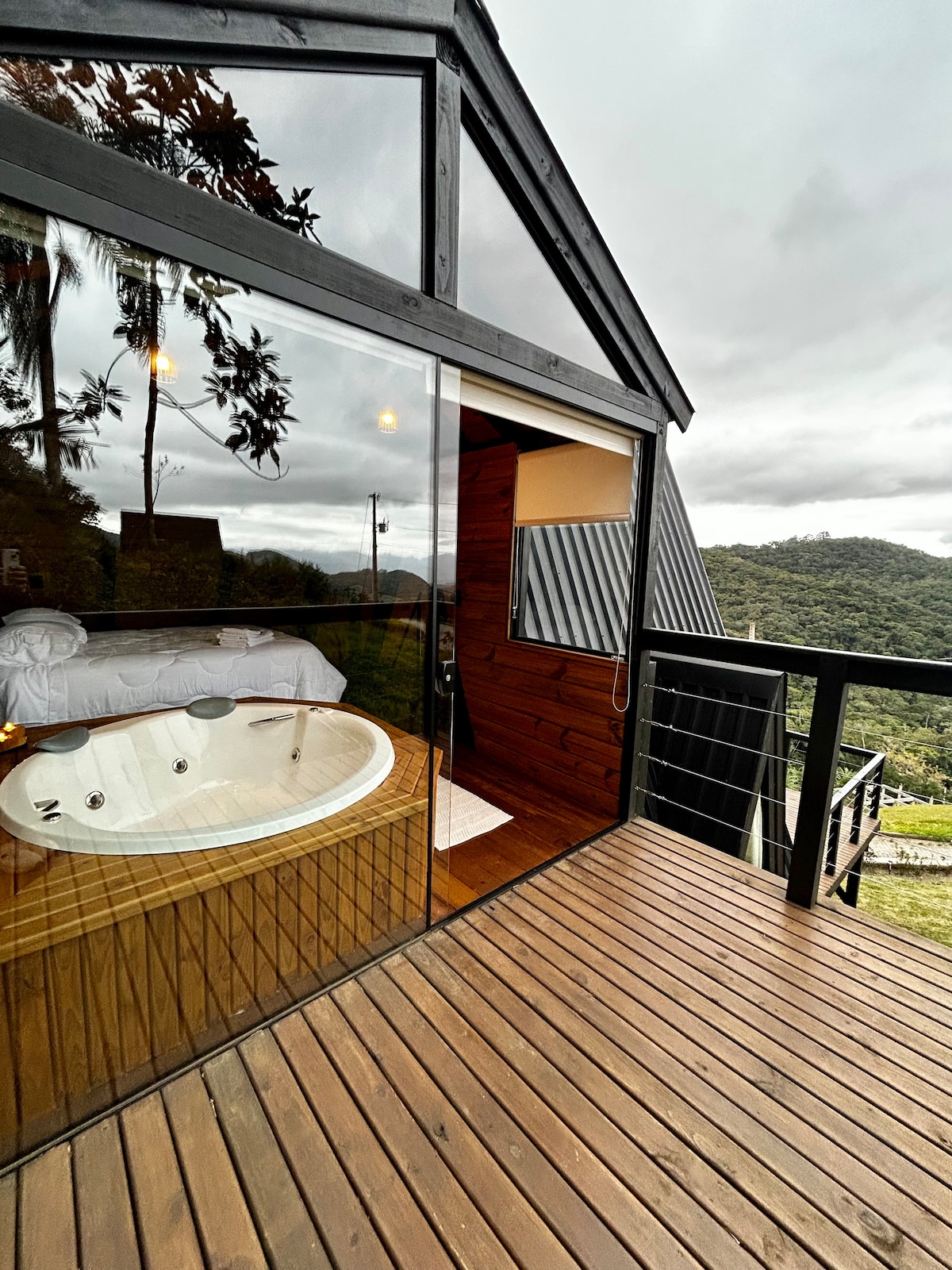 A retreat surrounded by the nature of Santa Catarina, featuring a hot tub, green views, a naturally cooler climate and fully equipped for your stay. Located in São Pedro de Alcântara, in the Greater Florianópolis area, within a charming chalet condominium, it is ideal for those seeking rest, charm and privacy. Always clean, organized and thoughtfully prepared for you. In addition to the main chalet, there is a separate annex with a second kitchen, sofa bed, table and full bathroom. Perfect relex