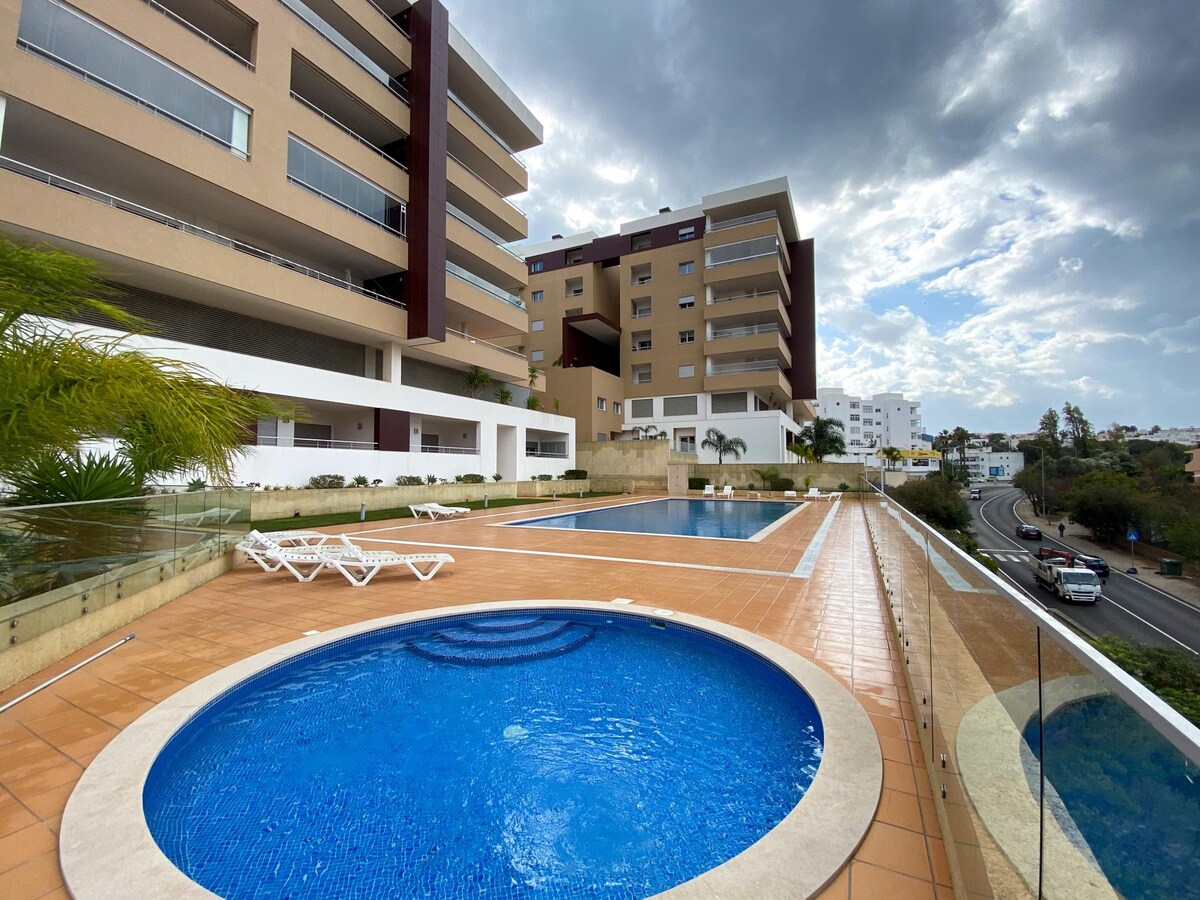 Our cool and comfortable design apartment was recently refurbished to cater for your best family beach vacation. Has a spacious and sunny balcony with open views, perfect for an afternoon drink. Common areas include a pool for adults and children, playground, tennis courts and plenty of space to run and play. Just 10m walking from the Marina and its restaurants, 20m from the beach, with easy access to lovely Lagos downtown, golf courses and beaches with some of the best Portugal's surfing waves.