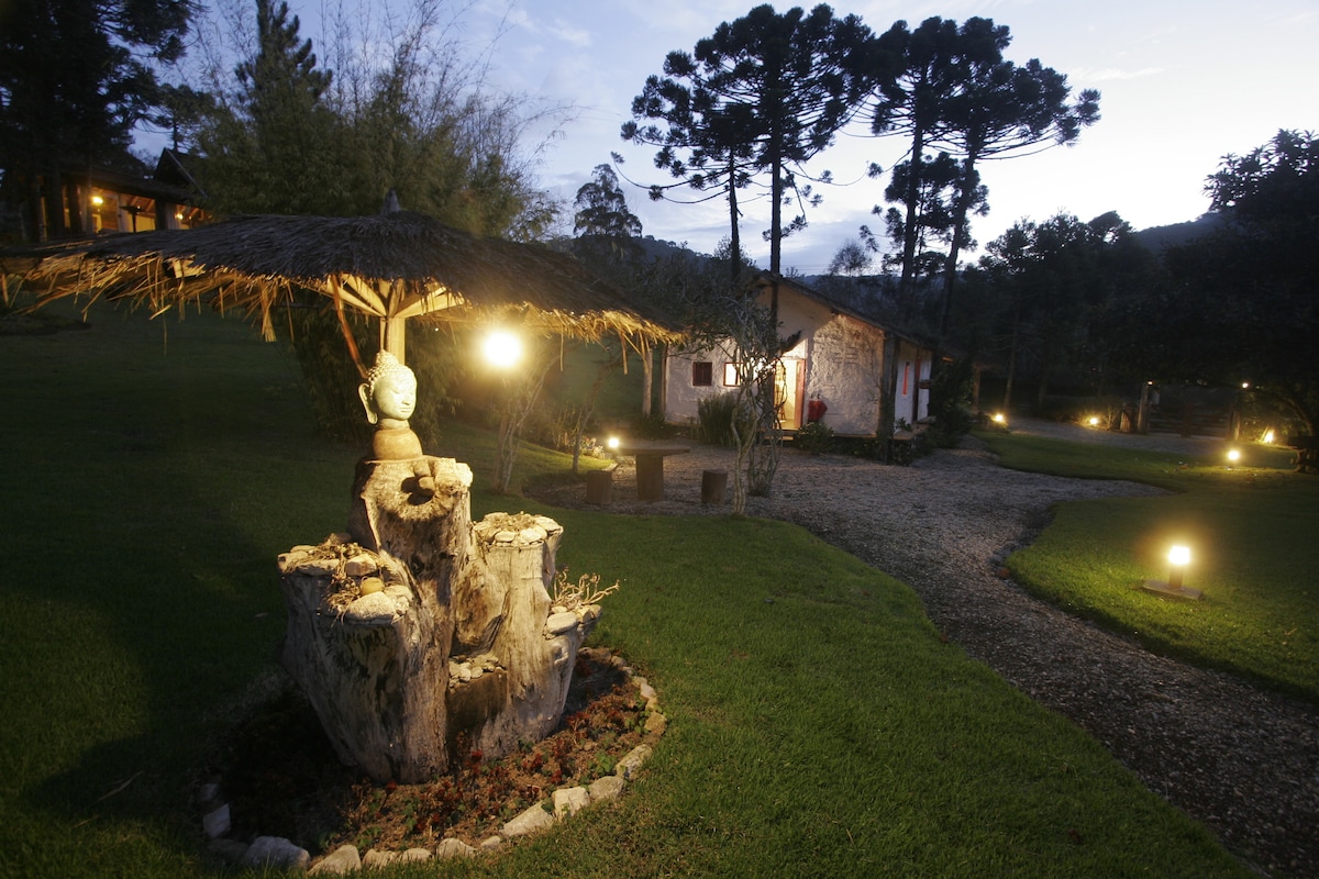 舒適的鄉村小屋風格小屋,坐落在保留的鄉村區域,配有泉水、壁爐、電視、迷你吧、微波爐、電熱水壺、零食、帶吊床的陽臺、互聯網。非常適合在原始的大自然、花園、鳥類和野生動物旁邊休息。附近有鱒魚釣場,還有零食和餐點外送。距離市中心12公里(15分鐘),距離喬當坎波斯(Campos do Jordão)25公里(40分鐘)。自然愛好者的天堂