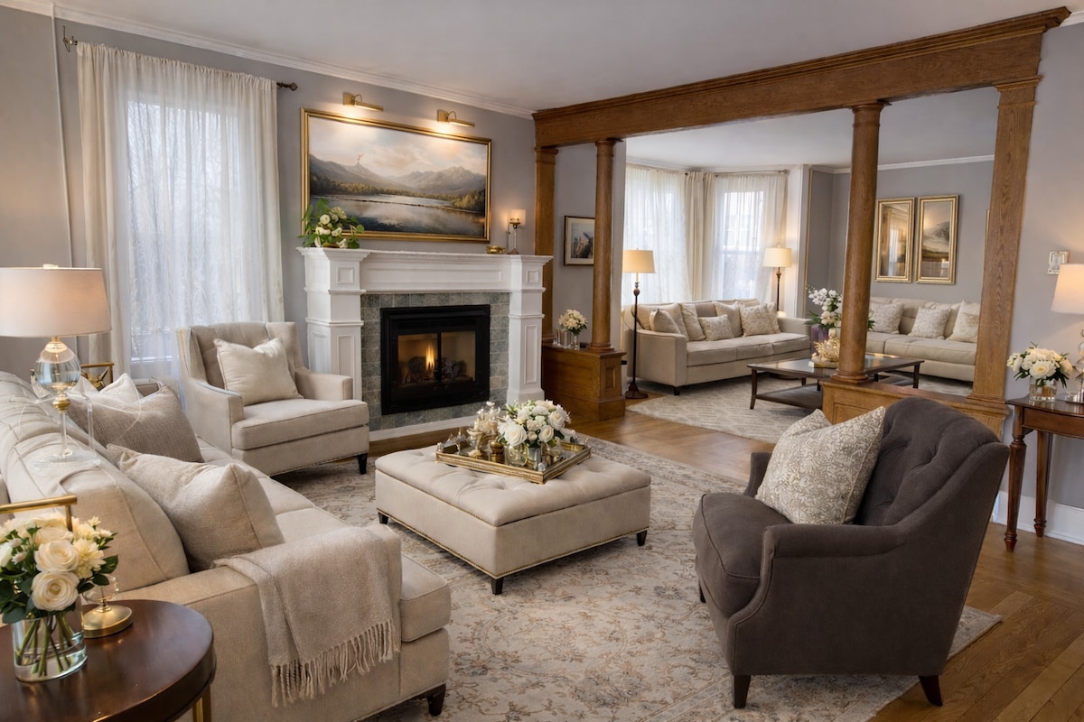 坐落在一條通往Five Points的寧靜街道上,距離Congress Park僅一個街區,步行幾分鐘即可抵達百老匯和賽道。 這間寬敞的三房角落住宅配備了你在薩拉託加舒適住宿所需的一切——特大主臥床、現代化廚房、全屋硬木地板以及可容納兩輛車的泊車位。