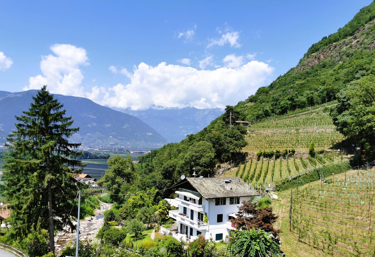 一個巨大的景觀,一個私人露臺和兩個時尚的公寓。我們的「farnhaus」坐落在曾經是一片大型蕨類草地的地方,四周環繞著大自然,雖然安靜,但交通便利。 整個埃奇河谷在我們面前延伸,無論是白天還是夜晚,都能欣賞到壯觀的景象,梅蘭和蒂羅爾城堡就在腳下。這裡是徒步旅行和散步的完美起點。