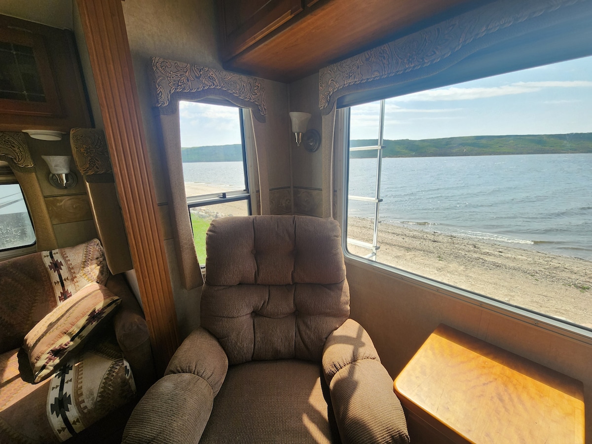 從露營車直接走到海灘!「Rockwood」露營車是雙岸旅館(Twin Shores Lodging)海灘旁邊的全服務露營地之一。這個地點位於Birds Point最南端,為露營者提供獨特的海灘前、湖邊露營體驗!
