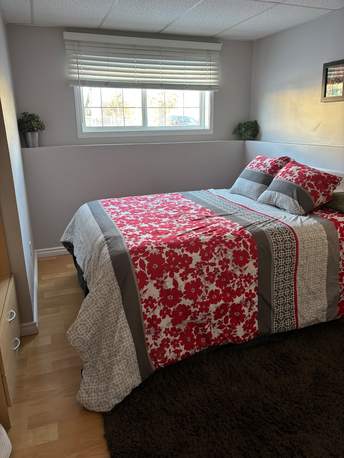 2 Bedroom Private Suite half block from Pasqua Hospital and Allan Blair Cancer clinic. One block away from Mosaic Place , Evraz Place and Exibition Grounds. Built in 2015, this new, clean , 1100 foot bottom half duplex has everything you need including its own private entrance, laundry, heating and central air, complete kitchen, 65 " Smart TV and WIFI. Long term tenants(mature couple) occupy main floor suite. Keurig coffee provided for guests.