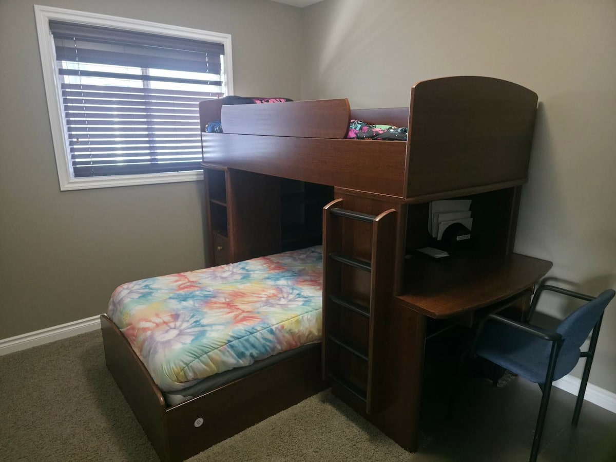 **There are 3 bedrooms listed on Airbnb** Our home is only 3 minutes drive to airport, walking distance to parks, restaurants and dining, approximately 10 minutes drive to City Centre (TCU) or Sasktel Centre. Great accommodations for families, couples, solo adventurers, and business travellers. Off street electrified parking, shared kitchen, living room, comfortable deck and hot tub available for registered guests only.