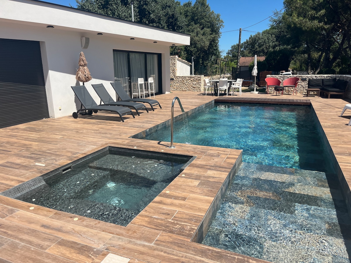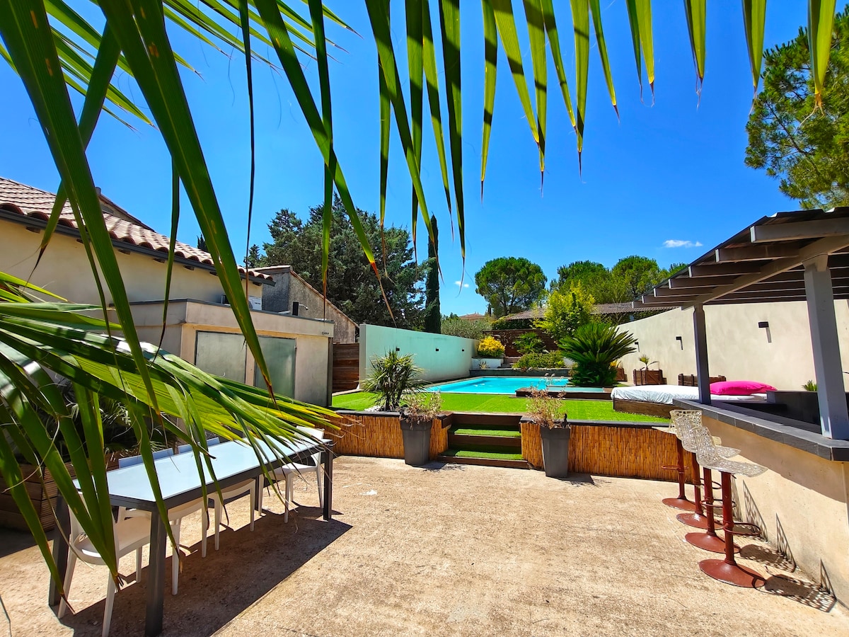 Villa familiale idéale pour séjour en famille ou entre amis. Beaucoup d’espace 185m² avec 4 chambres spacieuses toutes équipées de salle de bain privative, bonne literie (4 lits doubles dont 1 King Size et 1 Queen Size), 5 salles de bains, 3 WC séparés. Profitez d’un bureau, salle de sport et espace jeux (flipper, arcade). Extérieur : terrain de boules dans jardin totalement clos. Quartier résidentiel calme proche Nîmes. Wifi haut débit, Netflix. Tout le confort pour des moments inoubliables !
