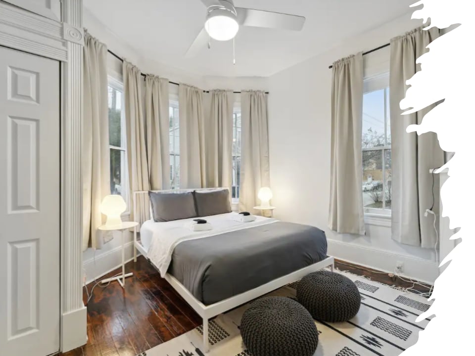 This beautifully renovated modern condo on the 2nd floor of our gorgeous Victorian home was just fully renovated! The kitchen, bathroom, bedrooms, appliances, and furniture are all brand new! We hope you also enjoy some of the original details we left intact, like the soaring windows that fill the space with light and the 12 foot ceilings! Enjoy gazing out the bay windows as you sip some morning coffee or take a walk to the famous Forsyth Park, just two blocks away! SVR-01897