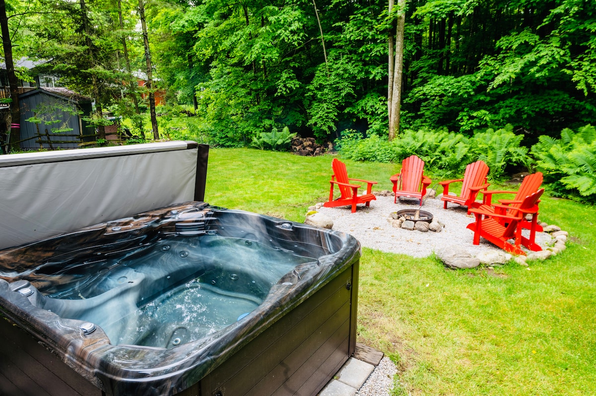 舒適的小木屋,配有按摩浴池、桑拿房、熱瑜伽工作室。