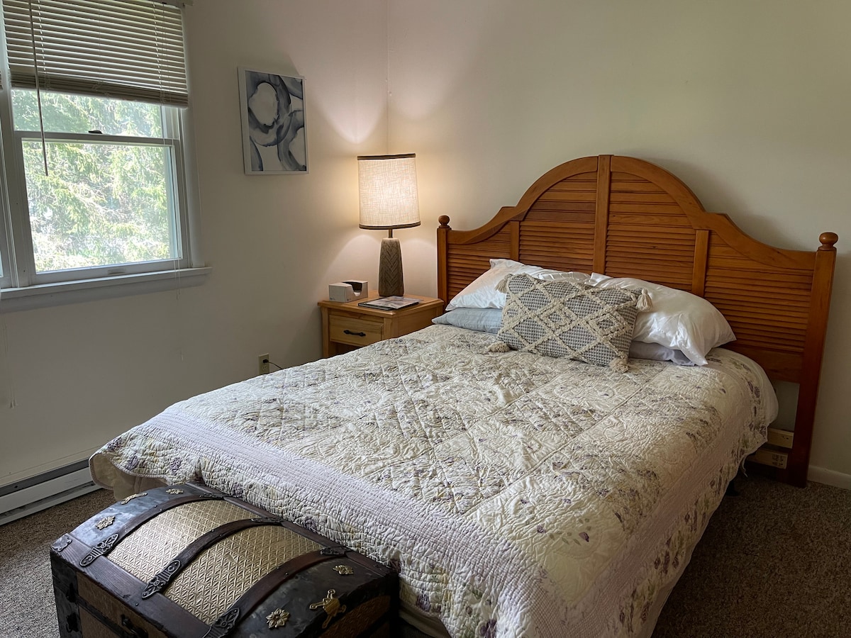 Enjoy a one bedroom apartment with a private entrance. Head up the old rear staircase around the back of a quaint 100 year old farmhouse. Stairs are a little steep. There is a kitchenette with a two burner stove, sink and under counter fridge. There is one full bath with a shower stall. In the living area there is a day bed with an extra twin mattress underneath. There is wireless internet for your use as well. It is 25 minutes to ski areas.