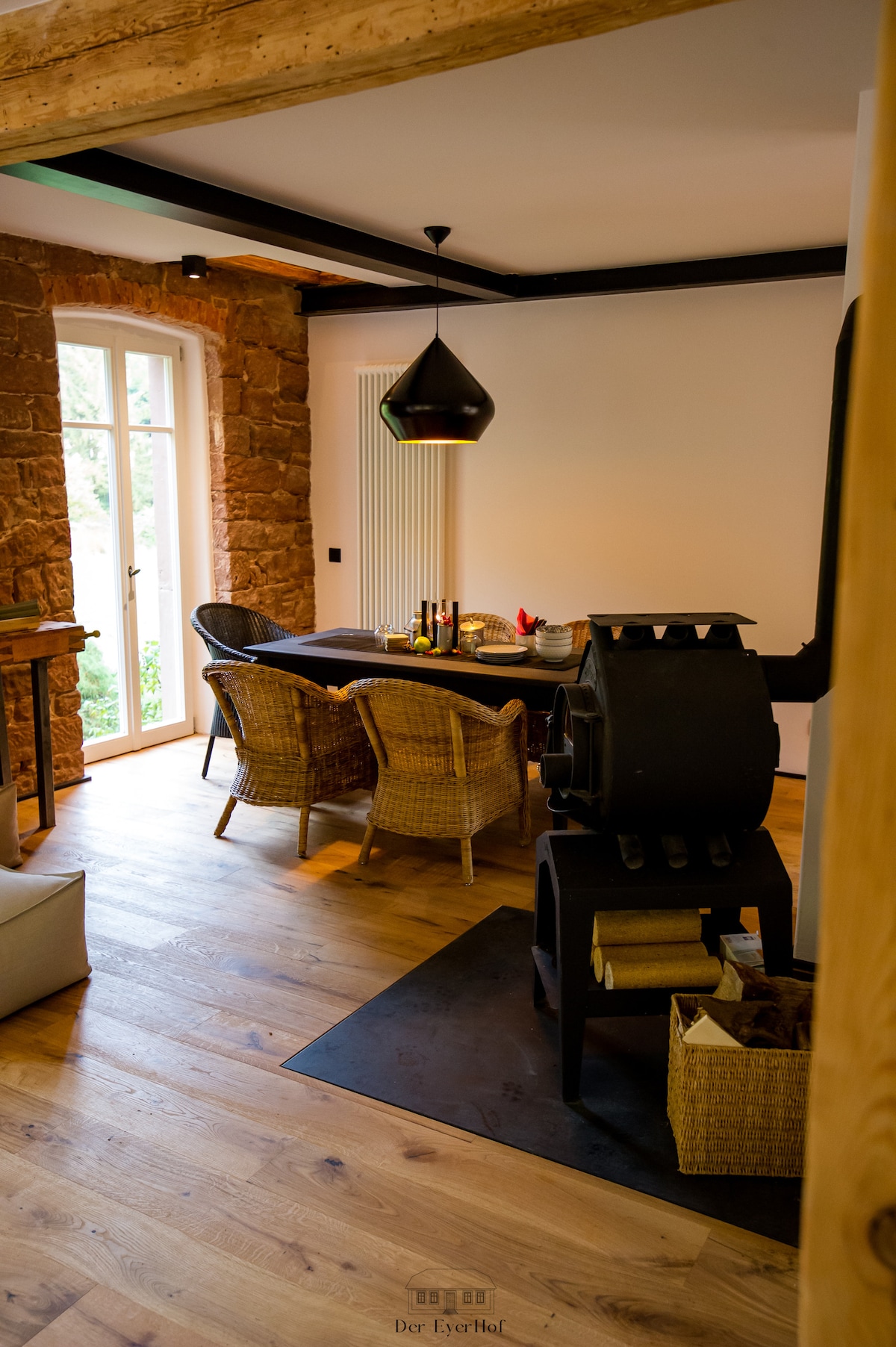 Der EyerHof- seit drei Generationen im Besitz der Familie Eyer - ein über 120 Jahre altes Bauernhaus das von 2019 - 2022 kernsaniert wurde und nun den besonderen Charme eines Bauernhauses mit modernem Industrial- Style verbindet. NebenTerrasse , Hof und Garten gibt es eine Grillstation mit großem neuen Rösle Gasgrill & die Scheune die als gemütlich Lounge genutzt werden kann . Das Interieur des Hauses verbindet Fachwerk mit modernem Eisen, Holz , Sandstein , Lehmwände und alt mit Neu 🖤