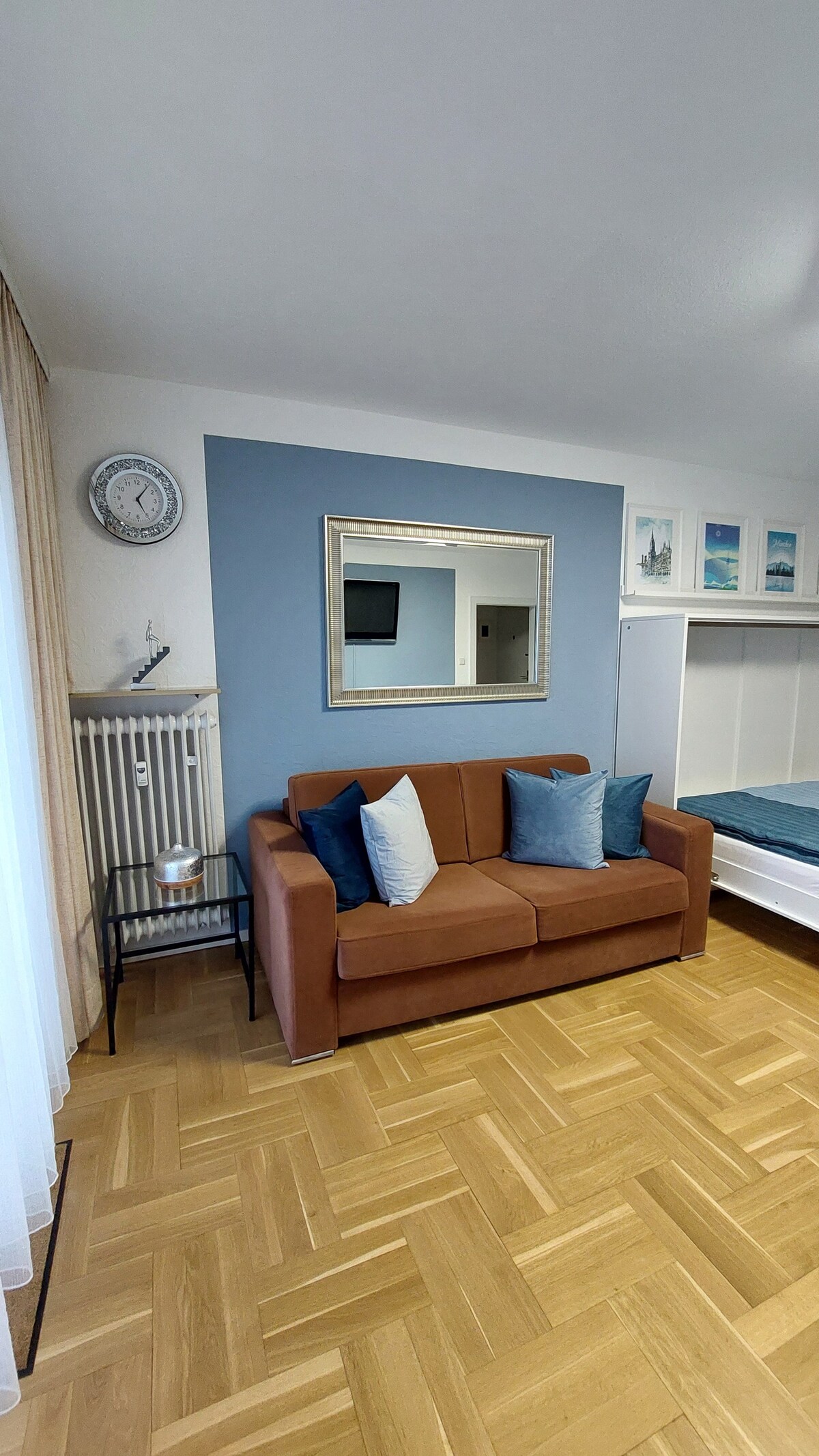 美麗的1.5房公寓-非常中心,但位於巴伐利亞/Theresienwiese附近-適合短期參觀美麗的慕尼黑,甚至更長時間! 公寓位於3樓(有電梯),非常明亮,約44平方米,有一個大陽台,可俯瞰鄉村,配有日光浴床和小餐桌椅。 現代、時尚,全新裝潢,配有箱式彈簧床、餐桌/工作桌、小廚房、淋浴間、步入式衣櫃等。