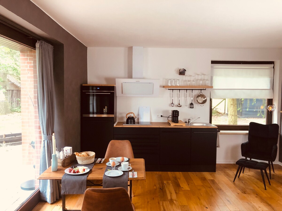 這間小公寓位於一個改建成公寓的舊農場上。公寓的魅力與古老的橫樑邀請您放鬆身心,放慢腳步。 附屬的大型物業可用於野餐或日光浴。 院子裡有足夠的停車位。 公寓位於呂訥堡草原的一個小村莊Düshorn。 村裡有一家麵包店和村莊商店,距離 3 公里的 Walsrode 有許多購物場所。