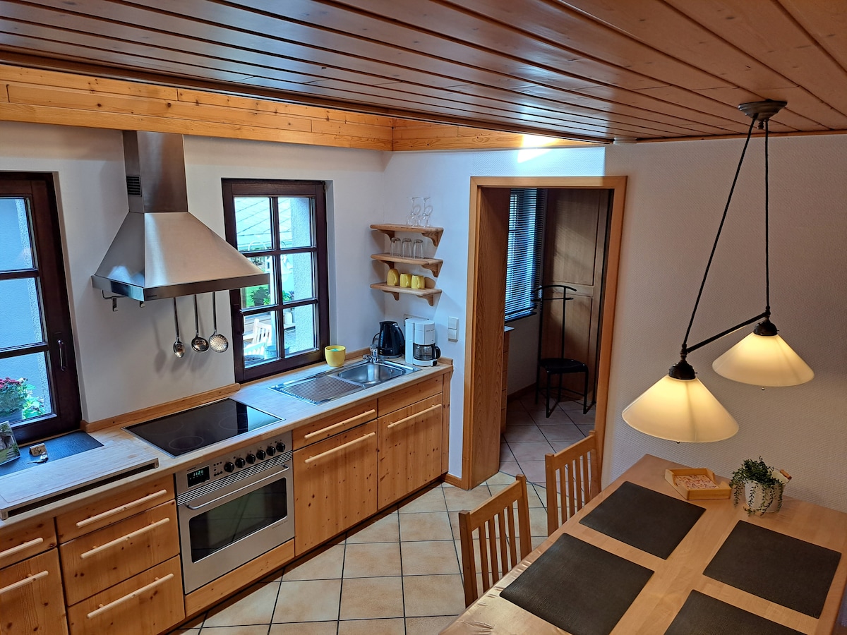 這個位於洪斯呂克 (Hunsrück) 田園詩般村莊邊緣的特別發現將會讓您著迷:逃離日常生活,在新翻修、光線充足的公寓中,欣賞廣闊的草地景觀景。寬敞的空間、設備齊全的廚房和現代復古風格的家具,讓您在舒適的彈簧床上度過寧靜的夜晚,並在獨特的環境中享受愉快的日子。歡迎來到 HuWies!