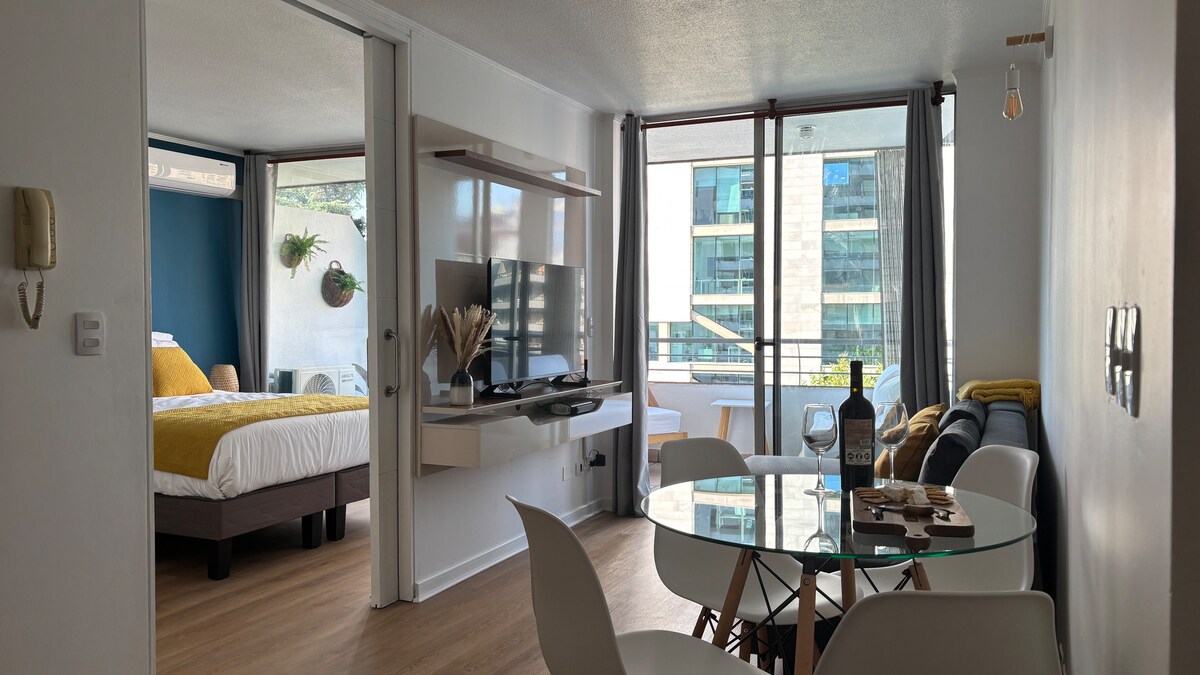 JC APART HOTEL Disfruta de una estadía cómoda en el corazón de Providencia. Moderno departamento studio con cocina equipada y wifi gratuito. Incluye limpieza diaria acotada (sin lavado de platos). Estacionamiento disponible y mascotas bienvenidas con un pequeño fee. Ideal para parejas, familias o viajeros por trabajo que buscan confort y buena ubicación.