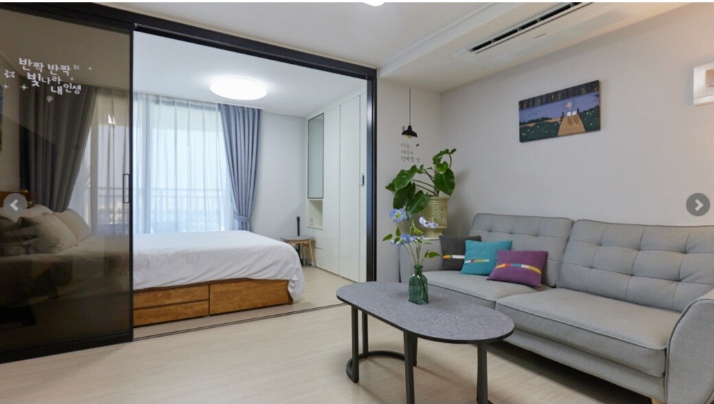 這是一間物超所值的閣樓式住宅,距離光海海灘(Gwangalli Beach)30秒路程。 這裡不是海景,但如果你出去,你可以馬上享受大海。 傢俬可能會因VV室內裝潢而有所變動。^ ^ 對於3人或以上,提供「床墊和毯子」。~ 1樓 冰箱、洗衣機(無洗衣精)、微波爐、電熱水壺 43吋電視(Netflix個人帳戶使用) Wi-Fi 折疊桌 盥洗室 洗髮精、護髮乳、沐浴乳、牙刷、牙膏(散裝式) 吹風機、毛巾、洗手液、泡沫清潔 (不提供X皁、浴巾、熨鬥、洗衣精或葡萄酒杯。) 廚房 電熱水壺 O 微波爐 O 不允許烹飪。(電磁X) loft 雙人牀墊。