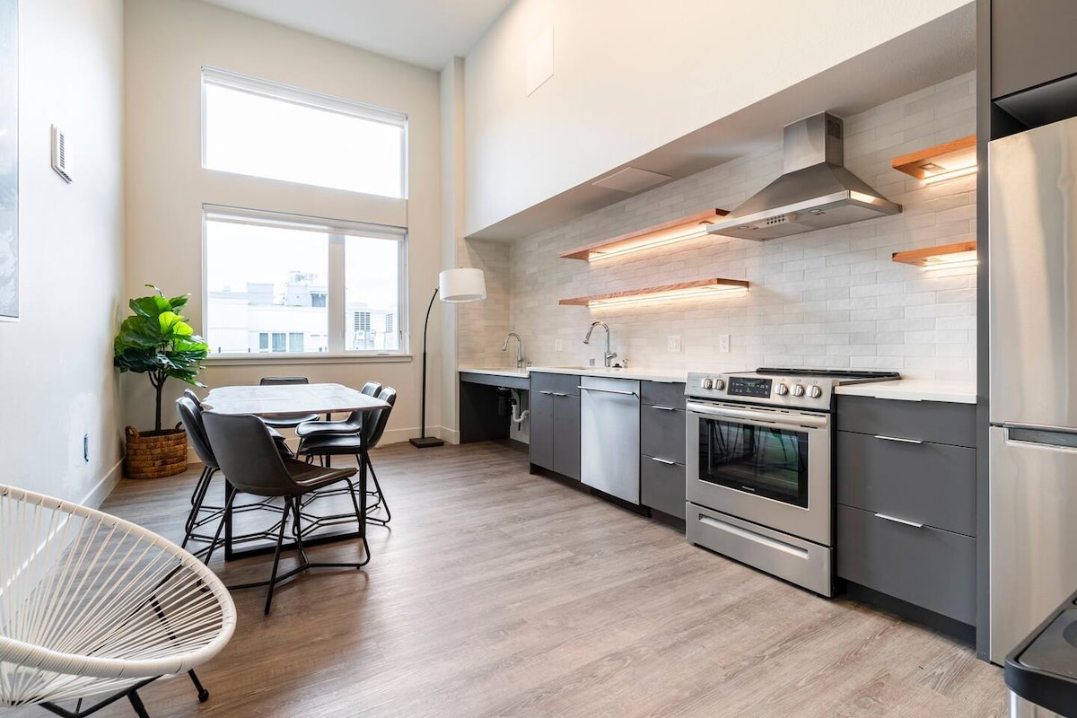 都市閣樓:16英尺高天花板、ADA無障礙及Ballard-Bound公共交通 歡迎來到這間充滿光線的閣樓式聖殿,擁有16英尺高的天花板和帶有私隱屏風的窗戶。 這間單位面積為525平方英尺,感覺非常通風、開放和舒適,是您西雅圖探險的理想基地。 它位於繁忙的街道上,樓上有Airbnb ,因此如果您對噪音敏感,請注意。 沒有退房雜務!
