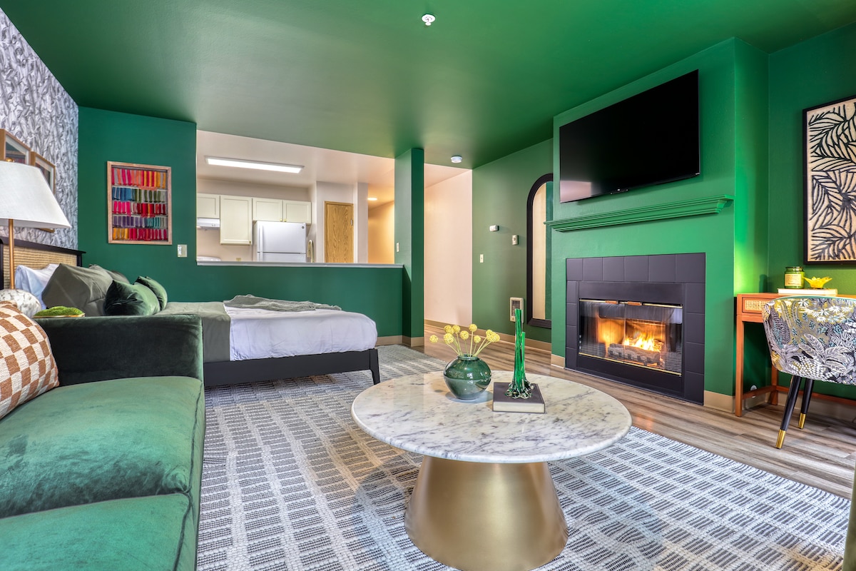 明亮綠色套房•步行即可抵達派克街•免費停車
