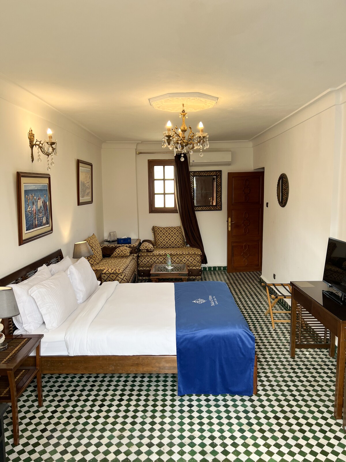 Niché au cœur de la médina de Fès, le Palais Shazam SPA vous invite à découvrir un havre de paix où le luxe et la tradition se rencontrent. Découvrez notre nouvelle chambre avec vue sur la piscine et la ville à Palais Shazam & Spa.Cette chambre offre une perspective unique où vous pourrez admirer à la fois la piscine et les charmes de la médina de Fès. Équipée pour répondre aux attentes des voyageurs internationaux, elle garantit confort et relaxation. Laissez-vous séduire par l'ambiance unique.