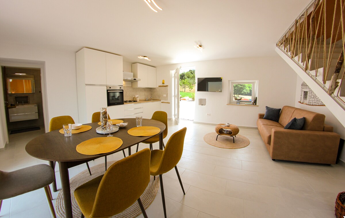 Authentic Istrian stone house built in 1922. This house is fully renovated and equipped to provide you all you need. Modern interior, fully equipped kitchen, relaxing living room, spacious bedrooms with private bathroom, an outdoor dinning area with grill, private pool and parking on the property. Each room is carefully designed by our designer. All this will afford you enjoy your holidays and fill up your batteries.