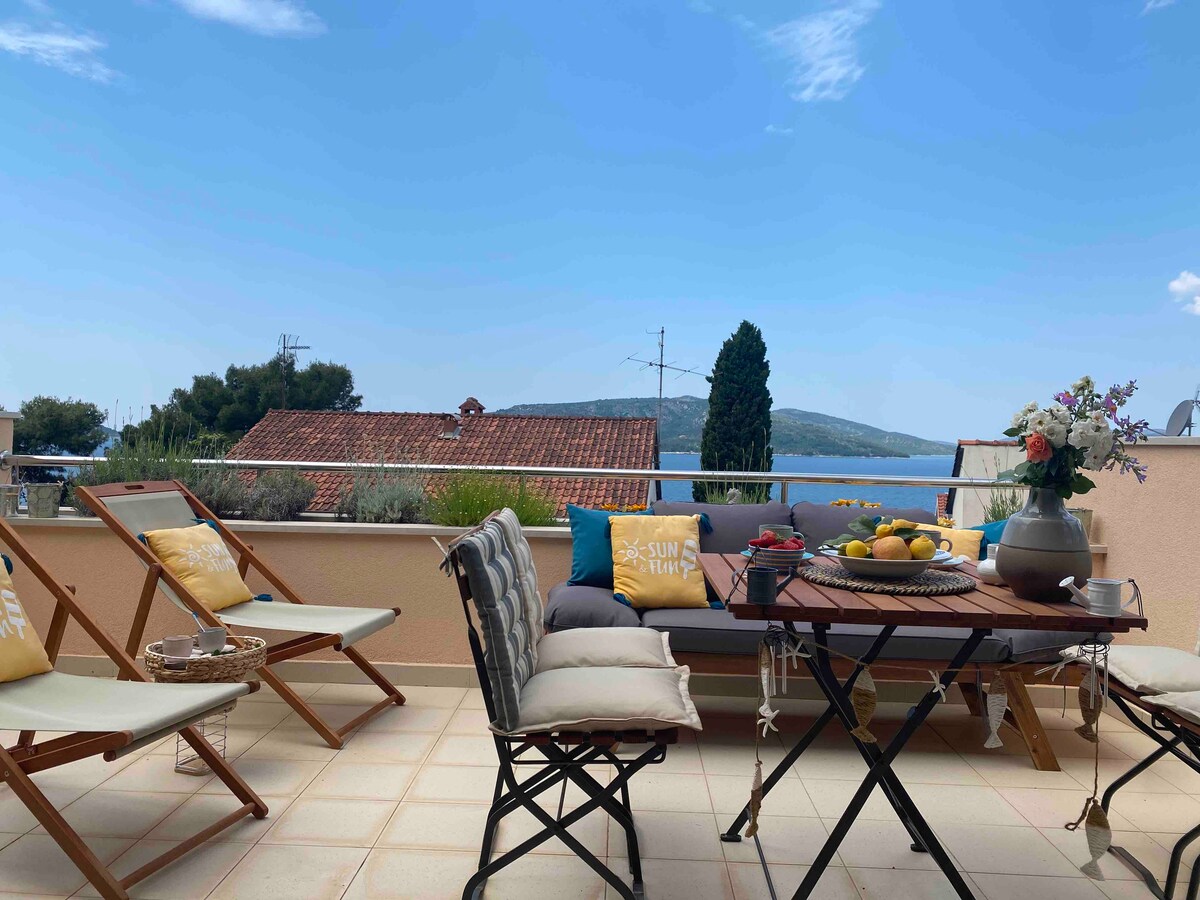 這間舒適、陽光明媚、全新翻修的度假公寓非常適合2至4人入住。公寓位於房子的三樓和最後一樓。 一間臥室,一間客廳,可以在舒適的沙發上睡覺,設備精良的廚房,全新浴室,以及絕對美妙的40平方米露臺,可欣賞驚嘆的海景!