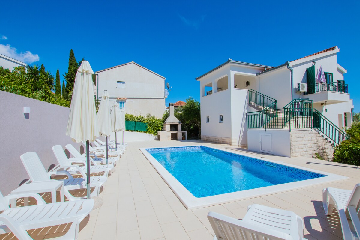 室內外裝潢精美的房子,坐落在田園詩般的環境中,靠近歷史悠久的特羅吉爾和斯普利特鎮。 房屋有寬敞的露臺,配有壁爐和泳池。 非常適合家庭或朋友團體休息。 圍欄式花園讓您的親朋好友自由享受遊戲。