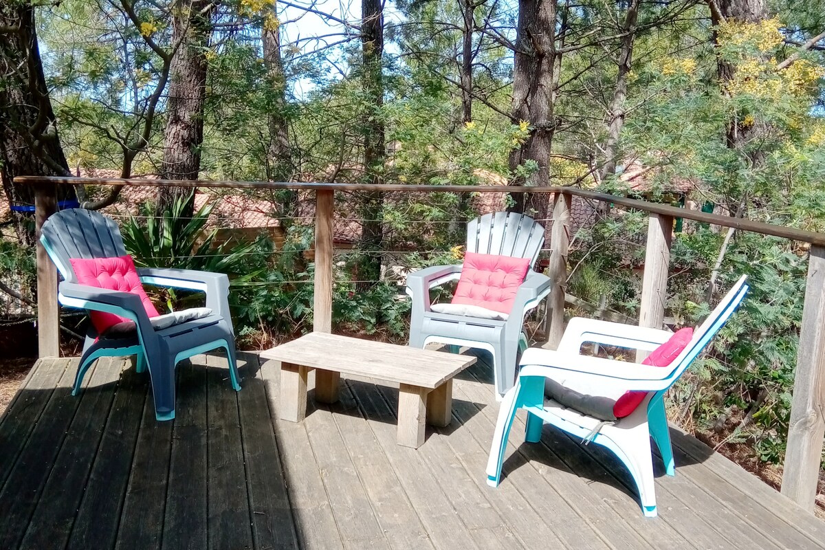 La "Guesthouse", dépendance de notre villa est située en lisière de forêt, sur une vaste propriété arborée de 15000m2 bordée par un ruisseau. Climatisée, équipée et décorée avec attention, la Guesthouse offre un confort moderne et élégant qui ravira les couples ou familles avec enfants. Elle est dotée d'un bain à remous pour se détendre. Une terrasse bois équipée d'un salon de jardin à l'année permet de profiter du moindre rayon de soleil !