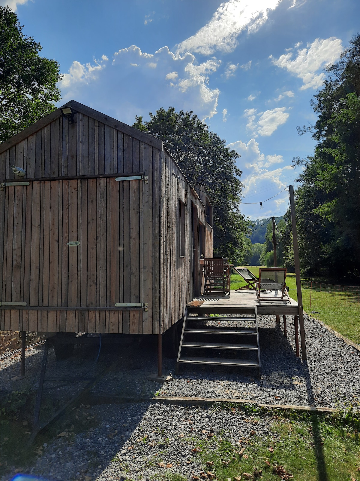 Construite et aménagée par un ébéniste, cette tiny house moderne et fonctionnelle offre tout le confort d’une maison. Située en bord de Lesse, en pleine nature, elle est entourée de rochers et de verdure, avec un réveil au chant des oiseaux. Animaux sur place (ânes, poules, oies, émeus, cochon et notre chien Poupette). Balades, baignade et pêche privée à proximité.