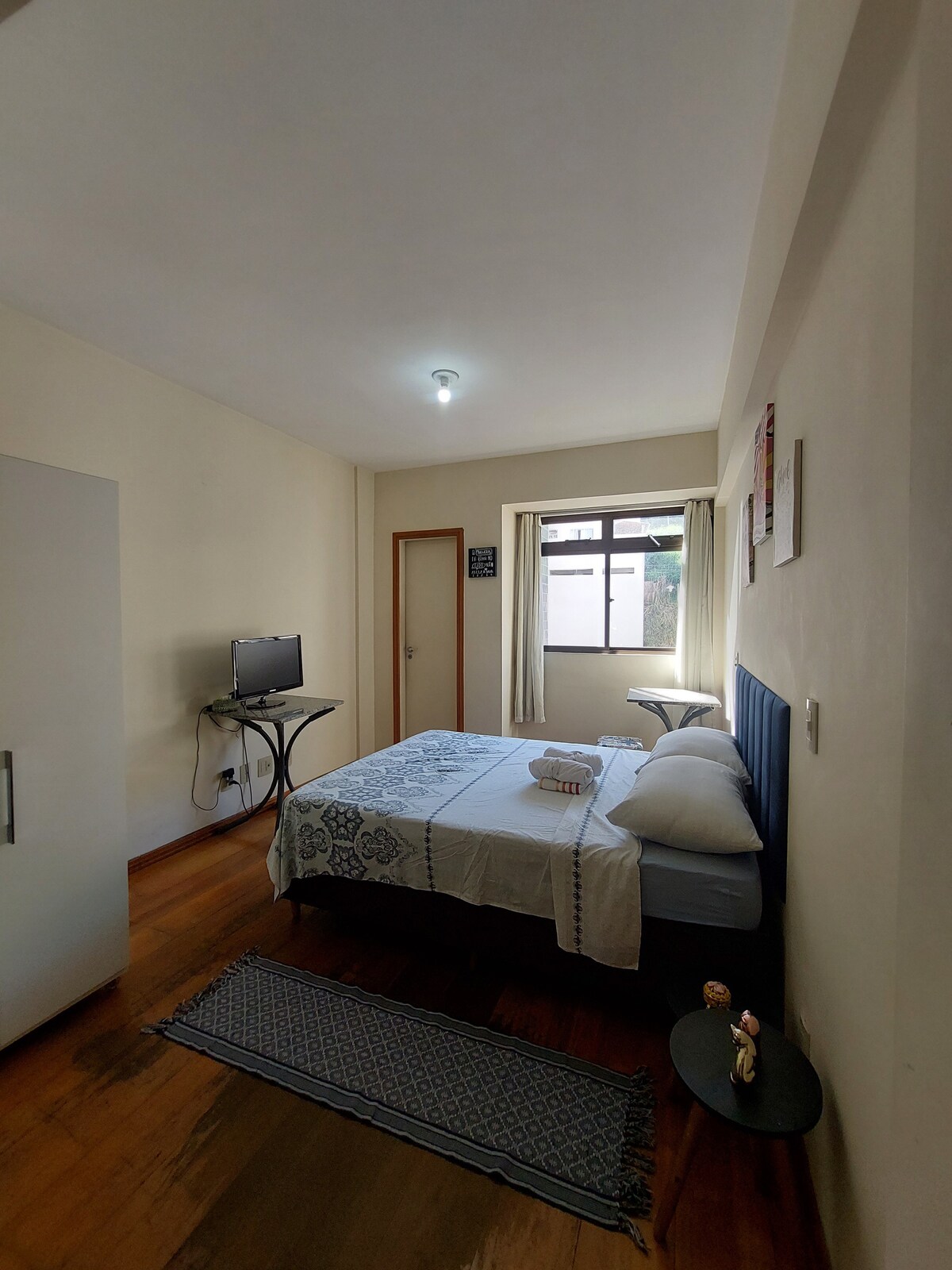 全新公寓,家具齊全,地理位置極佳。非常適合家庭或一小群朋友入住。它位於維索薩市中心,在超市前面,在商業畫廊上方,靠近計程車站、教堂、藥店、銀行和城市的主要商業街(Calçadão)。靠近UFV:900公尺(開車5分鐘,步行15分鐘)。