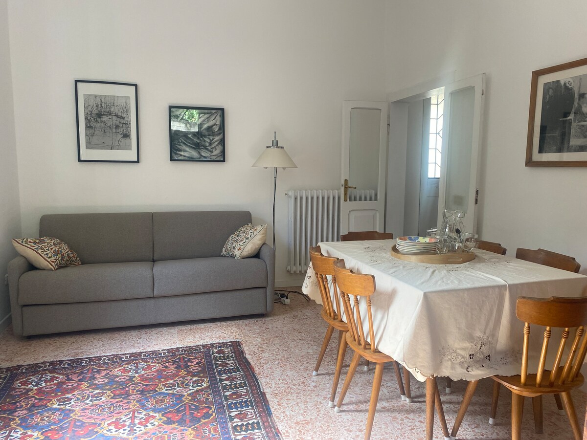 在一個被綠色環繞的家庭環境中,在一個非常安靜且服務良好的區域,距離海邊僅幾步之遙,旁邊有公共游泳池、網球場和 乒乓球,是您放鬆度假的理想選擇,同時不會放棄健康的運動。 步行5分鐘即可抵達海邊,騎自行車5分鐘即可抵達市中心,步行10-15分鐘即可抵達市中心。 住宿稅:每位房客每天1歐元,退房時以現金支付,最多7天,15歲以下兒童免稅。
