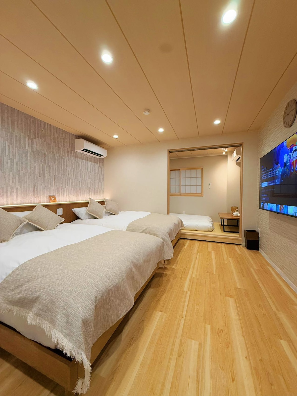 🏠 Tora Hotel Sensouji Moon(30㎡|極簡風格) 📍 位於東京都台東區千束 🗺 可利用交通:東京地鐵メトロ、日比谷線、JR山手線 🛍 距離【便利商店】與【地鐵站】步行10分鐘以內 🛏 房型與設施介紹 ・雙人床(1.4m × 2m)& 沙發床(1.8m × 1m) ・獨立衛浴(淋浴與廁所乾濕分離) ・冷暖氣空調 ・電視 ・附有烘乾功能的浴室 ・Wi-Fi(室內免費) 🍳 房內家電與廚房用具 ・電磁爐 ・冰箱 ・電熱水壺 ・微波爐 ・炊具(*為了衛生考量,暫不提供調味料) ・餐具 ・洗衣機與洗衣粉 ・廚房洗潔精與海綿 🧴 提供盥洗用品 ・牙刷、洗髮精、潤髮乳、沐浴乳 ・浴巾、毛巾 🚫 *不提供刮鬍刀與梳子 💡 垃圾袋與吹風機放置於洗手台下方櫃子內 📦 提供服務 ✅ 可線上入住/自助入住 ✅ 可寄放行李(請事先通知房東) ✅ 免費更換毛巾(限入住7晚以上)