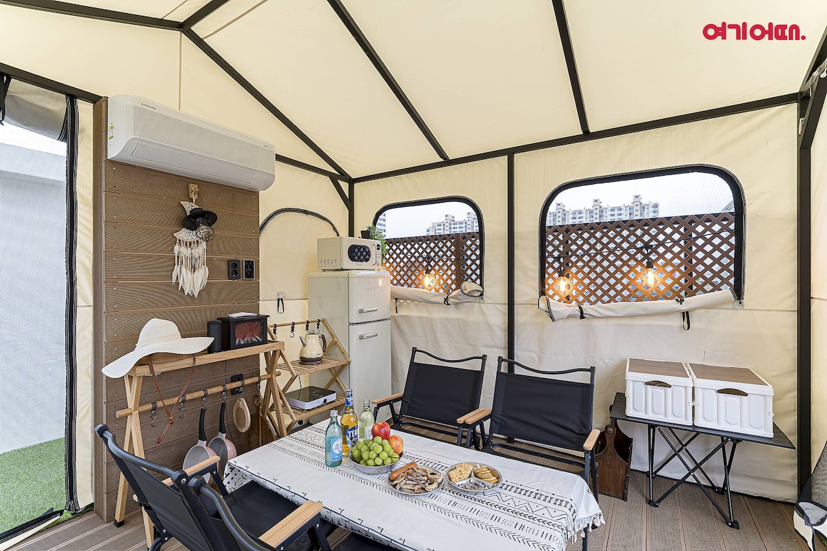 Two-Story Private Villa with Lawn & Panoramic Views in Ganghwa Standalone villa for up to 11 guests with a lush lawn and full privacy. Elevated views of forest, sea, and sky from the garden and 2nd-floor terrace. Hammock and benches for slow moments in nature. Near Ganghwa Luge, coastal pine walk, spring trail, and Gilsang Mountain hike (summit ~2 km, ~2 hrs round trip). Evening barbecue with premium charcoal, cauldron-lid griddle, and cozy fire grill. 10% off for stays of 2+ nights.