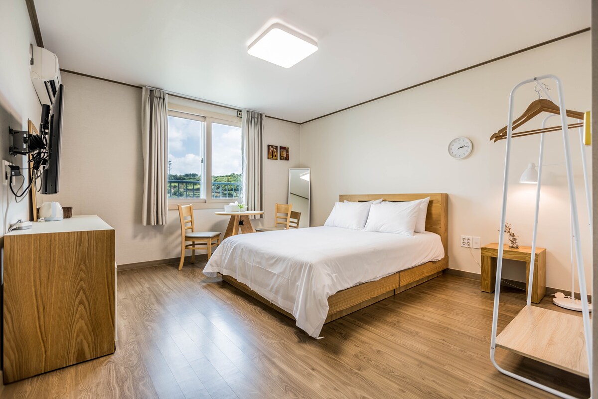*已登記的住宿業務 *單間公寓式私人房間(房間內有浴室、廚房) *房間不是方形的,而是梯形的。(對房間形狀敏感的人將被拒絕) *可水洗 *電鍋可提前租用(適用於入住7晚或以上的旅人) 烹調時必須通風 *房間內提供洗頭水、護髮素、沐浴乳、吹風機、毛巾和瓶裝水。 *不提供牙刷、牙膏、香梘和剃鬚刀。 *房間內已安裝Wi-Fi *走廊、停車場安裝閉路電視、安裝前門鎖、適合女性獨自入住的安全住宿 *從機場開車3分鐘,乘坐巴士5分鐘,巴士站就在酒店旁邊(多條路線) *住宿附近的便利店、24小時超市、巴黎貝甜、藥店、醫院等。1分鐘內便利設施 *所有房間均禁止吸煙(如被發現,將罰款100,000韓元,並立即搬出) *可在房間內送餐 *入住前和退房後均可寄存行李。 *入住日期前7日內無法更改 *這是一個人的獨立房間。如果有多於一人使用,即屬未經授權,我們將立即搬出,不予退款。 *不接受2歲以下的嬰兒(不接受額外旅人) *相片和景觀可能會因你獲分配的房間樓層而有所不同。