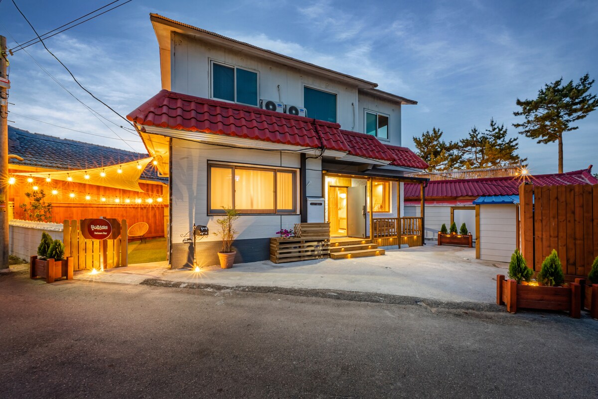這是一間20平方米的韓屋住宿,位於海邊的森林中,是一間韓屋私人住宅,Bulsol Pension。 客廳和大房間1間、小房間1間、廁所2間、最多可容納5人,價格以2人為準。 厚實的頂層床墊毯,配有地暖,步行5分鐘即可抵達Seorak Beach ,靠近Sokcho City、Daepo Port和Naksansa。 作為一家便利店,開車3分鐘即可抵達江賢Hanaro Mart,開車2分鐘即可抵達駱山支店,開車10分鐘即可抵達襄陽市中心。 您可以在陽陽衝浪點體驗衝浪,例如Mulchi、Jeongam和Seorak Beach。 海上旅行後,您可以在安靜的松樹林韓屋中放鬆身心,並在屋簷的盡頭欣賞星空。 臥室沒有牀,並提供暖氣。 廚房可以輕鬆烹飪,但請避免烹飪有味道的食物,因為內部的松香味可能會消失。 您可以在室外用餐區的6人餐桌上用餐。 燒烤設備和boosta中有鑄造烤架。 木炭燒烤的丁烷氣體必須單獨準備。 在傳統韓屋中與家人一起休息,享受淡淡的松香氣味。