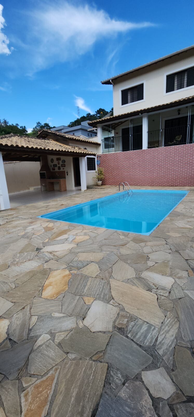 在這個安靜的住宿中,與家人和朋友享受獨特時刻,房子有寬敞的空間,配有頂級美食區燒烤,300mbps Wi-Fi 網絡。 有兩間臥室,其中一間有套房和雙人床,另一間臥室有雙層床和雙人床,客廳有 50 吋 Netflix 智慧電視、家庭劇院、音響和空調。 配備齊全的廚房,配有所有用具。 我們不提供床單、桌布和浴巾。 安全的室內車庫 山景美麗,靠近市中心