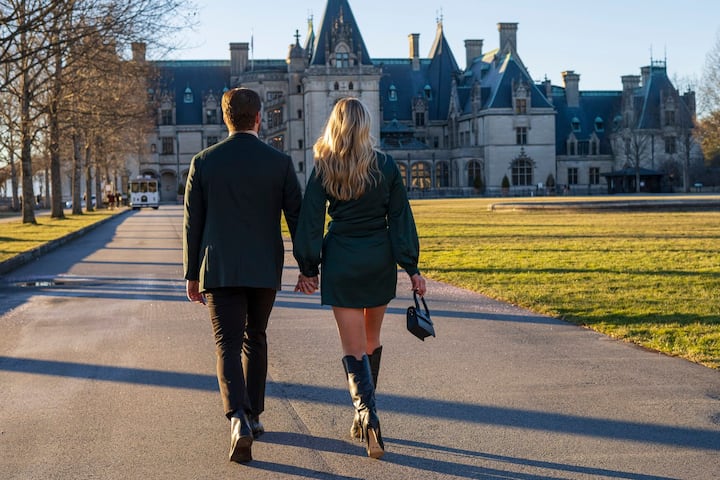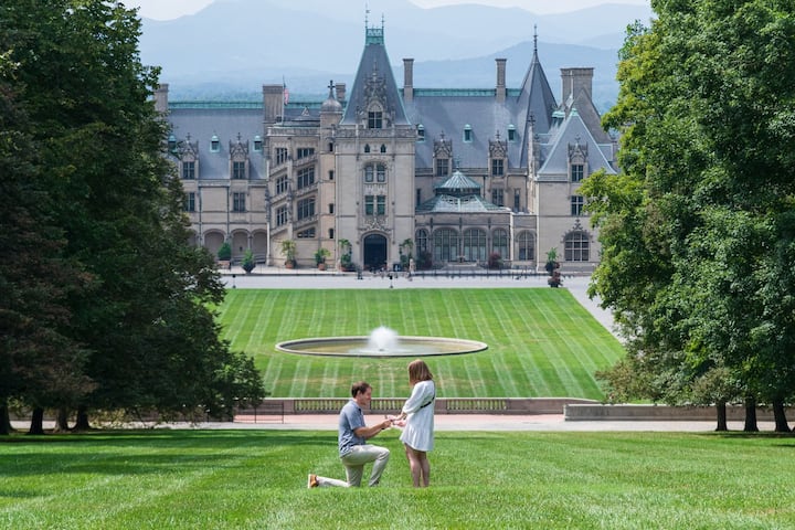 聘請攝影師為你在比爾特莫爾莊園 (Biltmore Estate) 的驚喜訂婚拍照。造訪多個地點拍照。
