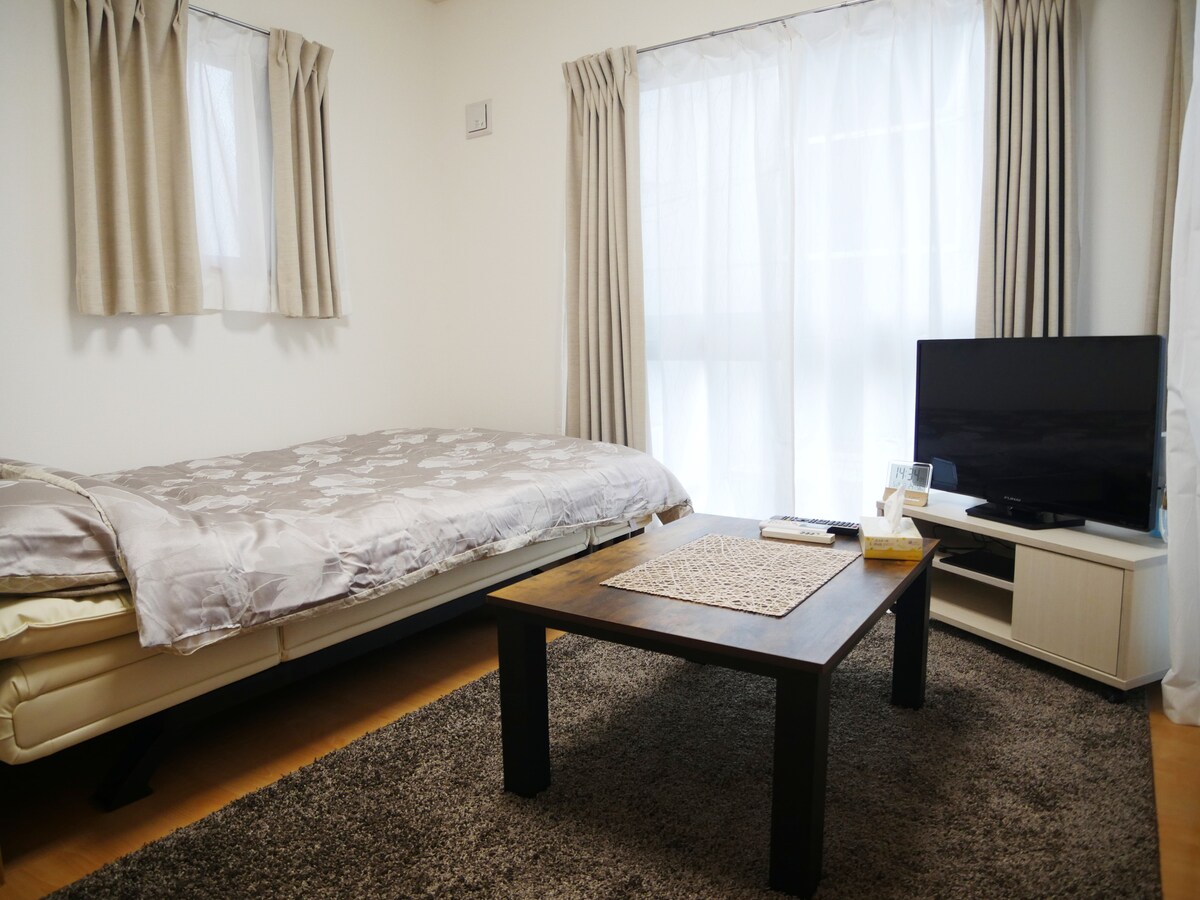 這是一間一般的日式一房公寓。 基本上可供 1-2 位房客入住。只有半雙人沙發床。 沙發床的尺寸為211公分× 122厘米。 如果您願意,我可以提供充氣床墊。 距離新宿站20分鐘。(步行10分鐘即可抵達大田橋站,搭乘火車10分鐘即可抵達新宿。或步行15分鐘即可抵達薩薩蘇卡站,搭乘火車5分鐘即可抵達新宿。) 這棟大樓旁邊就有巴士站,您可以乘坐巴士前往薩薩祖卡站和澀谷站。 乘坐巴士 30 分鐘即可抵達澀谷
