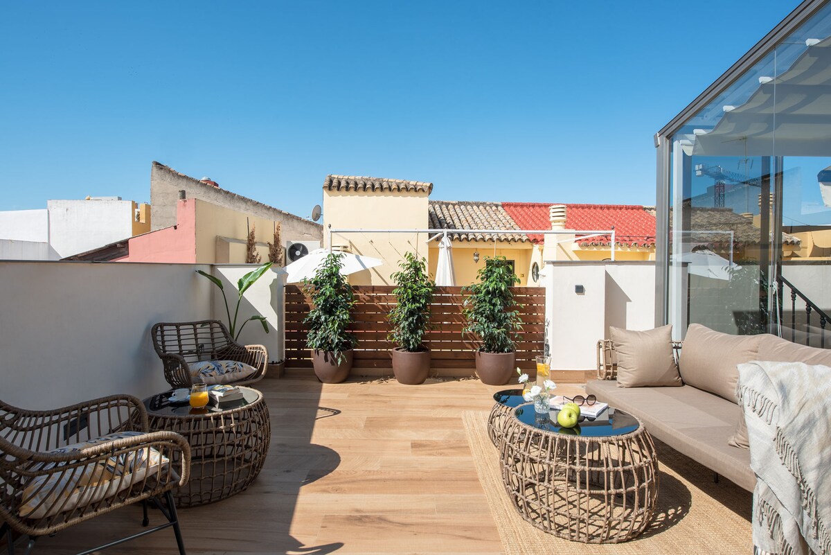 Spectacular apartment for 3 people, located in the heart of Seville. The building has the latest technology and has a rooftop terrace-solarium with a plunge pool and views of the city open from 5th April to 2nd November.