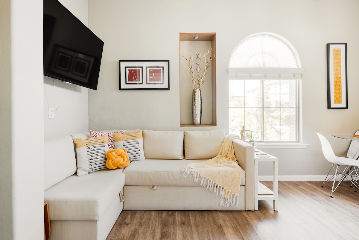 安靜社區的舒適私人客用套房。配有智慧鎖的獨立入口。臥室和沙發的加大記憶泡綿床墊可以變成全尺寸床。房間提供迷你冰箱、微波爐、Keurig和配備Roku的電視,可滿足您的所有串流需求。位置方便,靠近許多商店、當地餐廳,距離貝爾銀行公園(Bell Bank Park)和梅薩機場(Mesa Airport)只有很短的車程。房客可使用2級電動車充電(14-50 NEMA插座,50安培斷路器)!