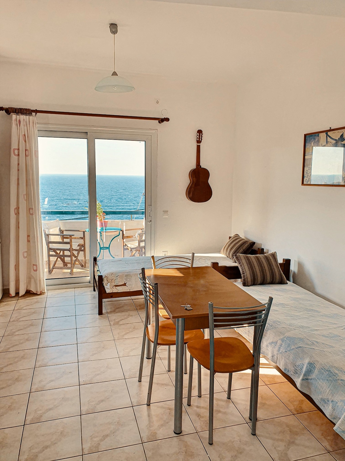 Relax with a Greek coffee on your private balconies with panoramic views of the mountains and the Ikarian Sea. A small port, which many locals frequently swim at, is a 150 meter downhill walk. A local beach called Firodi is another 350 meters from the port. Seychelles Beach can also be accessed from the port by small boat trip during summer months.