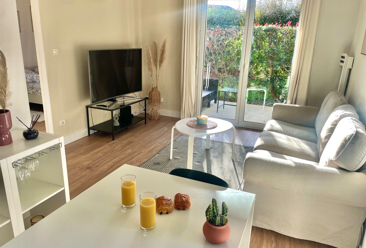 Coconfort是一間明亮而優雅的公寓,坐落在鬱鬱蔥蔥的綠色環境中。 27平方米(290平方英尺)全面翻新: -獨立、設備齊全的廚房。 - 獨立的睡眠區域,設有儲物空間和小型辦公室,與起居區域優雅地分開,從露台可俯瞰住宅的庭院。 -浴室配有馬桶、淋浴間和洗衣機。 床鋪好,提供一條毛巾。 這間安靜的地面公寓不會俯瞰街道。 方便直接進出,並設有安全的私人泊車位。