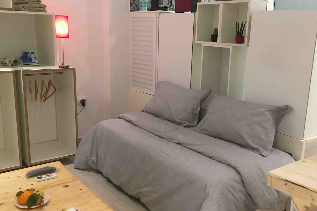 迷人的工作室,配備所有設備與服務、設備精良的小廚房、浴室和折疊牀,提供電視和Wi-Fi連線。公寓位於一個安靜的區域,從市中心乘坐計程車15分鐘即可抵達國際博覽會,從斯法克斯機場15分鐘即可抵達