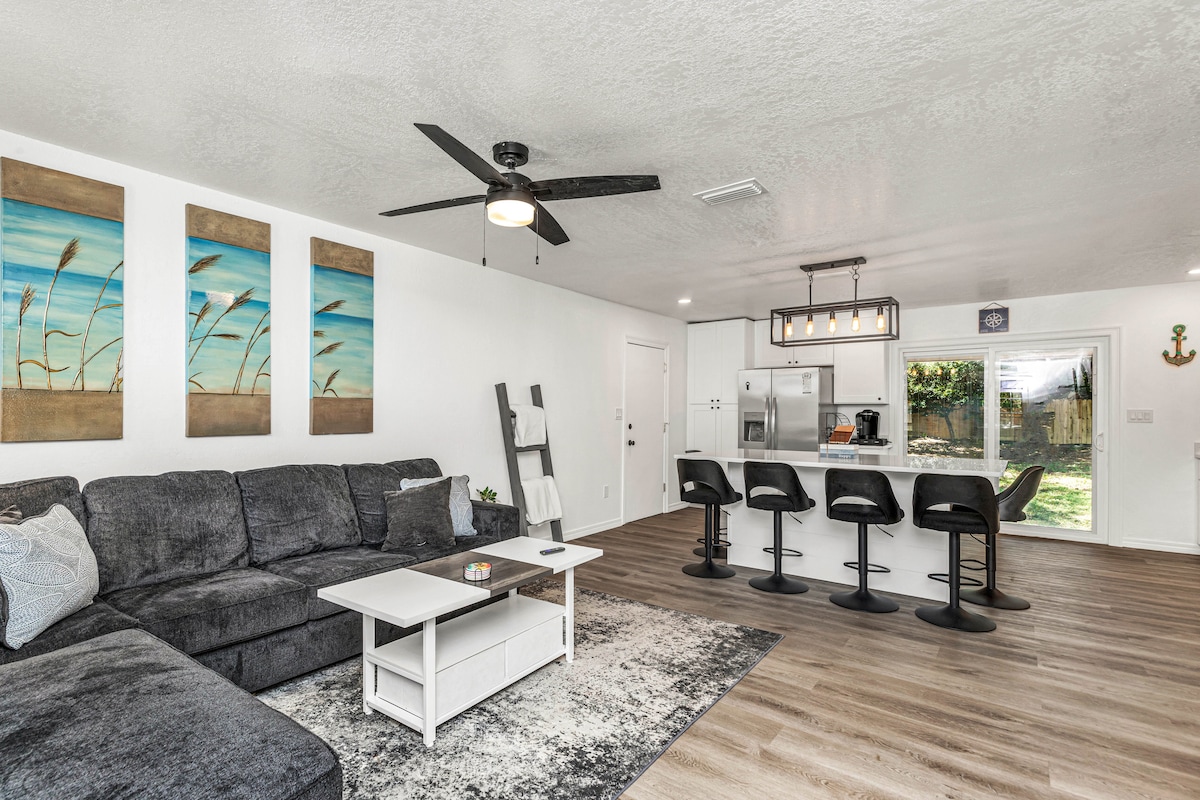 與親友一起入住這間全新翻修的海濱房源。這間舒適的房源距離墨西哥灣海岸的原始海灘僅幾分鐘車程,提供舒適的居家空間,位於佛羅里達海灘市中心附近。沿著街道步行即可抵達公共水域,欣賞海灣景色。車道上有充足的停車位,可供您停放船、拖車或露營車。享受大型圍欄後院,非常適合戶外娛樂。立即預訂,體驗佛羅里達州翡翠海岸的最佳體驗。