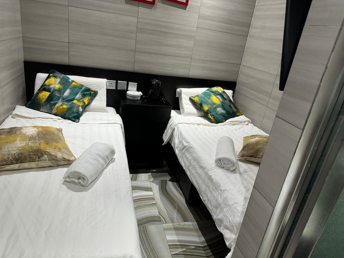 Twin2.旺角购物区.交通便捷.全新装修房间.带独立卫生间,实惠双床房(部分有窗)