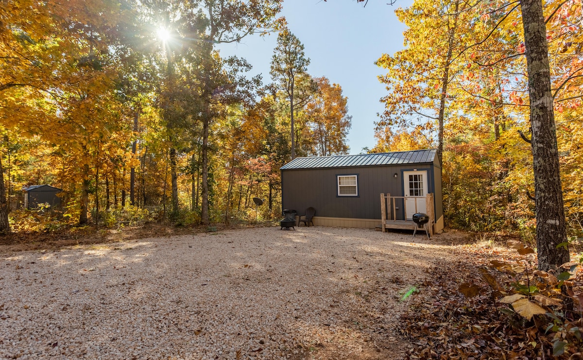 雙人床、雙層床、小冰箱/微波爐、2人桌椅、獨立浴室/毛巾和床單。空調/暖氣、咖啡壺和配件。 房客須攜帶紙盤、紙巾、塑膠餐具和木炭。 野餐桌、17英寸桌面Blackstone平面、帶丙烷、烤肉架和每個小屋外的火坑。露營和小木屋生活的完美組合。 允許攜帶寵物,需事先批準。每天每隻寵物收費25美元。 入住時收取費用。 房東、狗和貓住在房源內。