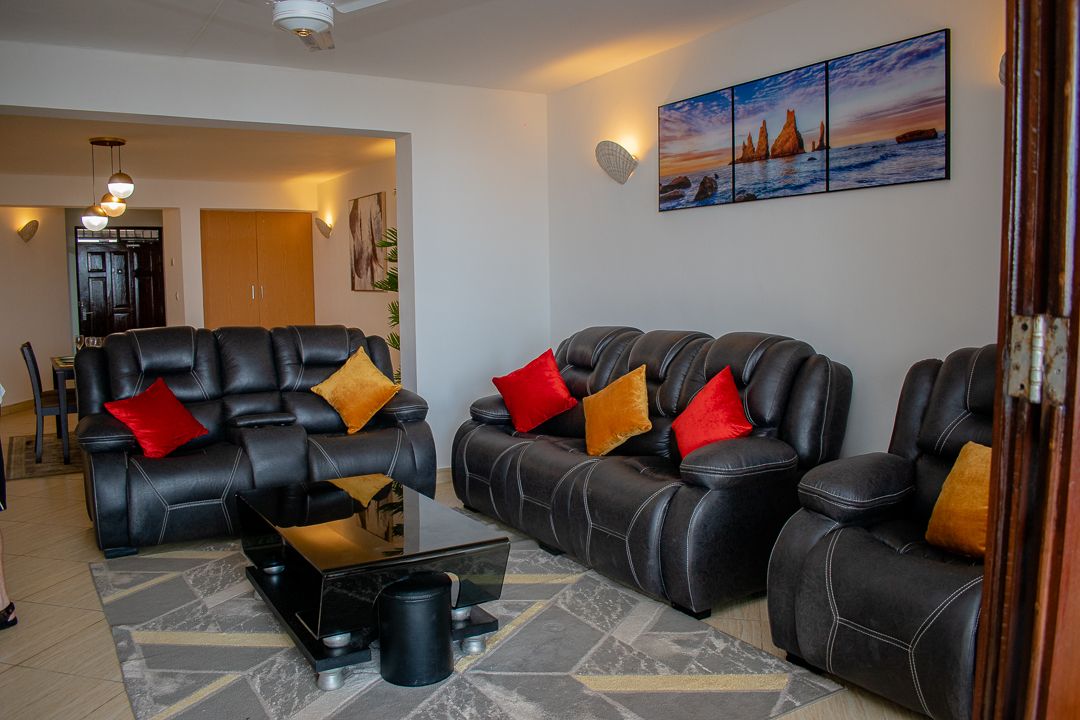 舒適的服務式單間公寓(Bamburi) *適合 2 名成人和 1 名兒童或 3 名成人入住,配有 1 張雙人床和 1 張單人床 *包含每日清潔服務 *餐桌配有四張椅子、沙發、咖啡桌 * 空調 * 電視 *上鎖保險箱 *陽臺-兩張椅子、咖啡桌 *廚房-冰箱、微波爐、水壺、咖啡機、烤麵包機、陶瓷餐具、餐具 *可使用設施-泳池、兒童遊樂區、海灘酒吧、餐廳、健身房、海灘、洗衣房 *距離莫伊國際機場 21 公里 *距離 SGR 蒙巴薩 26 公里