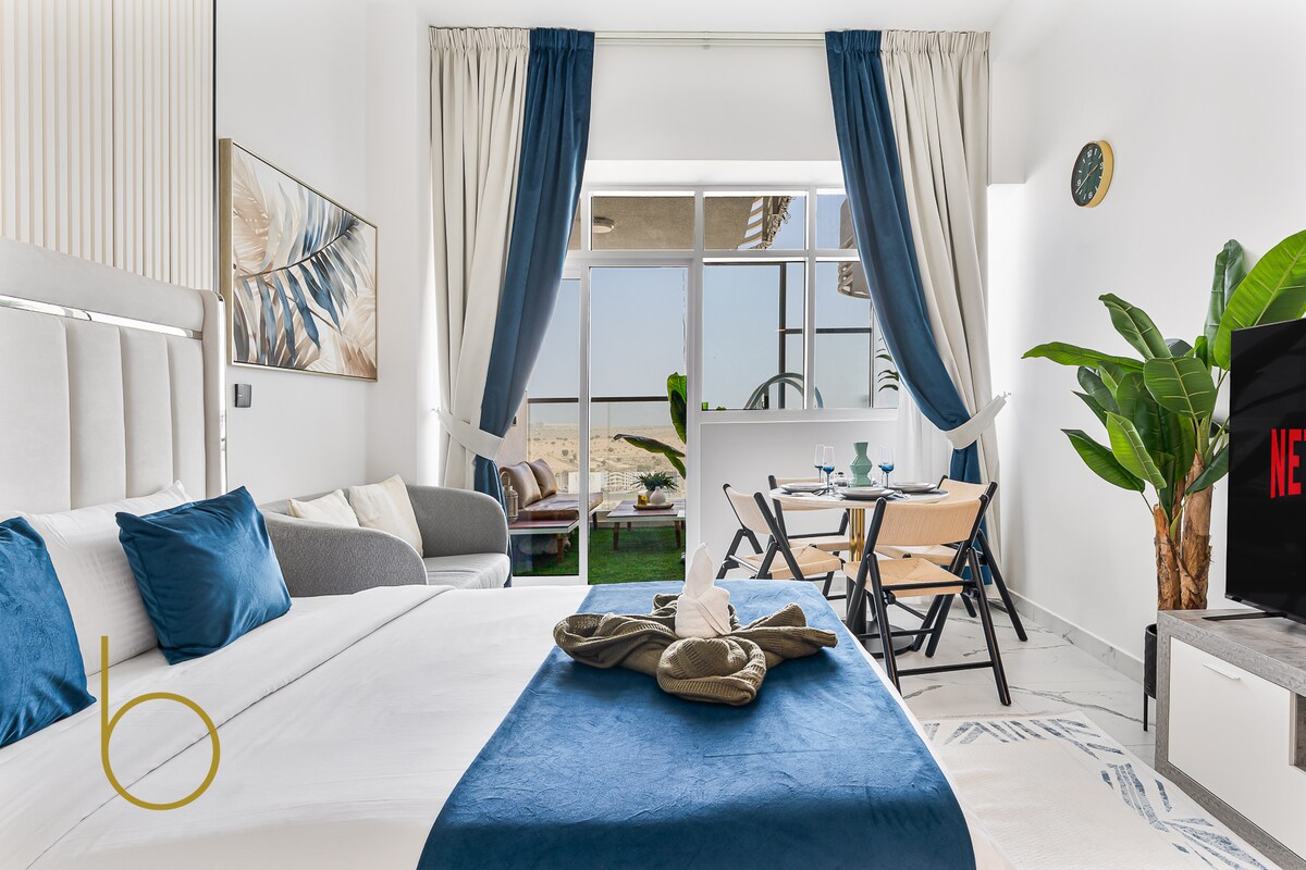 歡迎來到Blue Cloud Holidays的精品單間公寓,這是位於沙迦Al Mamsha的全新單間公寓。這間全新的公寓提供無與倫比的便利和舒適。前往沙迦機場(10 分鐘)和杜拜機場(20 分鐘)都很方便。享受高級設備與服務,包括設備齊全的廚房、高速WiFi 和泳池。 我們的首要任務是清潔,確保您入住的空間清新舒適。體驗沙迦市中心的奢華生活