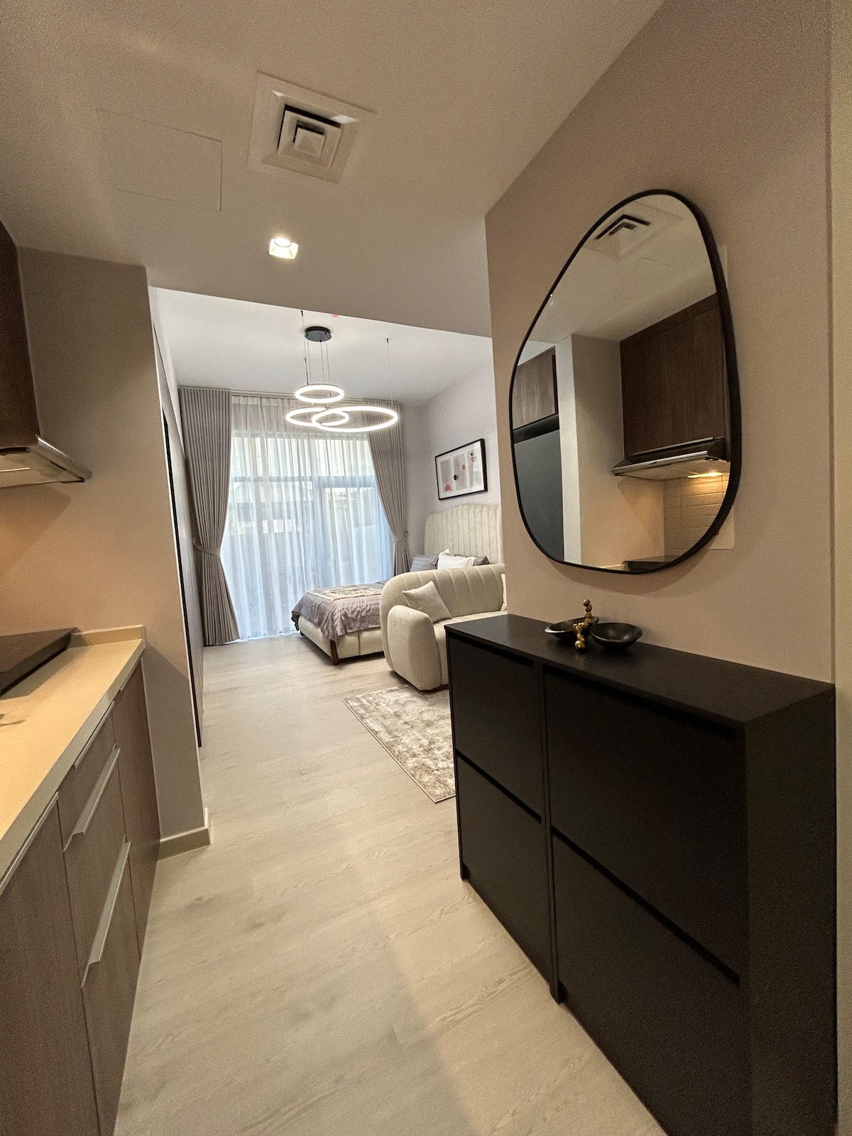 Welcome to the Ash & Luxe Studio, a brand new studio apartment in Al Mamsha, Sharjah. This brand-new apartment offers unparalleled convenience and comfort. Enjoy quick access to Sharjah Airport (10 mins) and Dubai Airport (20 mins). Indulge in premium amenities, including a fully equipped kitchen, high-speed Wi-Fi and pool access. Our top priority is cleanliness, ensuring a fresh & inviting space for your stay. Experience luxury living in the heart of Sharjah!