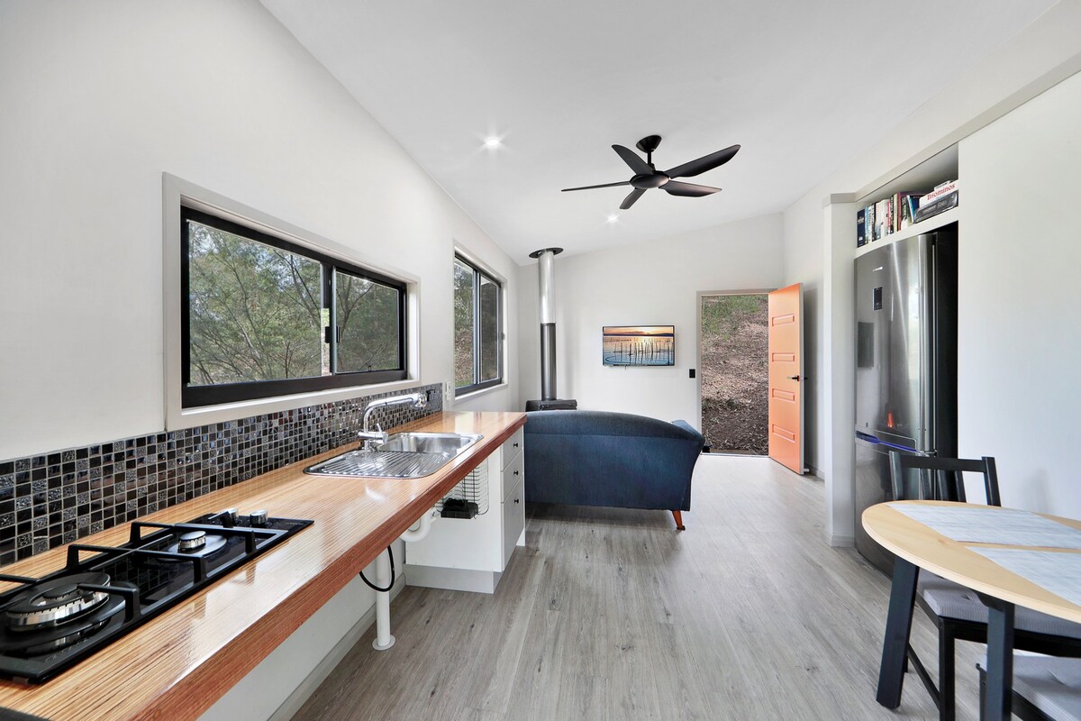 獨立寬敞的房間配有1.8米寬雙人牀、小廚房和沙發,配有無障礙浴室。 露臺外可俯瞰灌木叢和伯內特河( Burnett River ) ,配有座位和燒烤。 10分鐘即可抵達購物中心和餐廳, 15分鐘即可抵達班德堡中央商務區。 請注意,沒有Wi-Fi ,但我們有Telstra和Optus接收,您可以將熱點連接到電視上以使用串流服務。 我們不允許狗在現場,這是為了他們的安全,因為我們的物業沒有完全圍欄。
