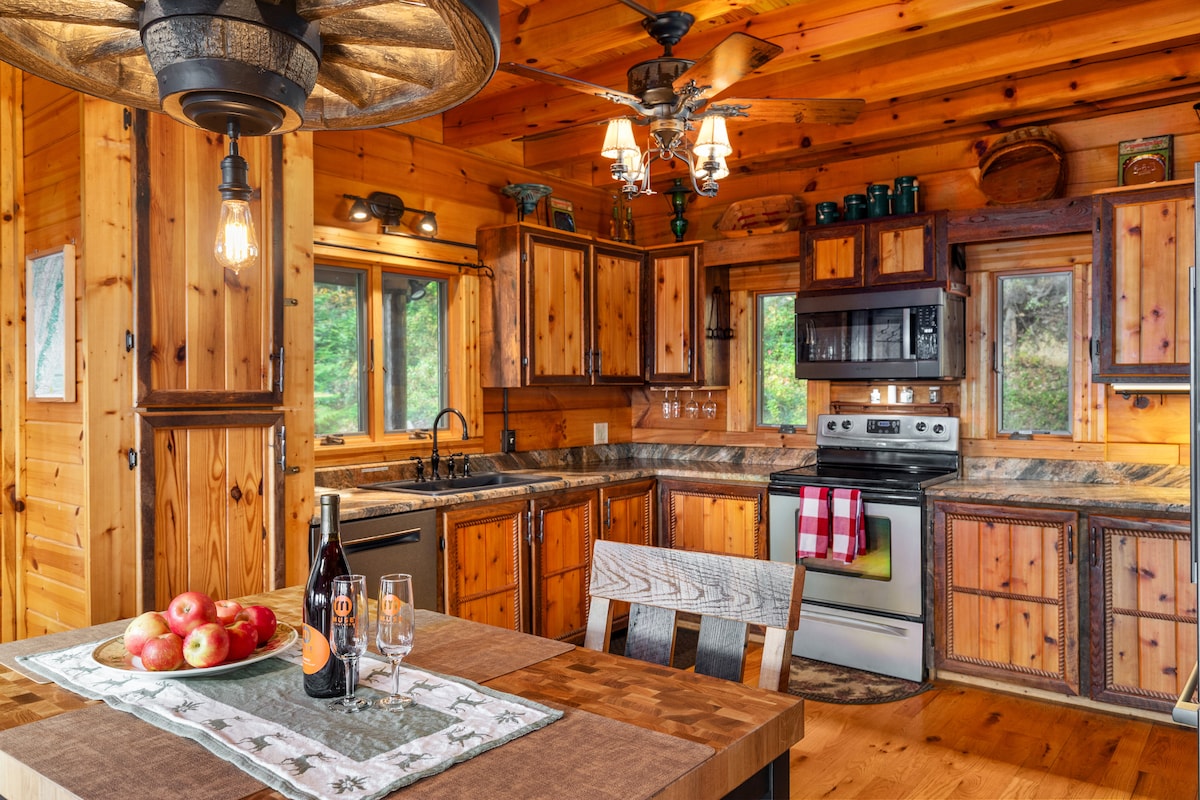 在11英畝的私人林地上欣賞令人驚嘆的60多英裏景觀! 在我們溫馨的小木屋中放鬆身心,充滿獨特的木工、溫馨的裝飾和現代化的設備與服務。 配有私人浴室和上下鋪的國王套房,非常適合情侶或有小孩的家庭。 探索戶外後,在芬蘭桑拿浴室放鬆身心。 重新發現簡單樂趣的樂趣,例如在火坑裡分享故事和玩遊戲。 距離Luray/Caverns僅10分鐘,距離國家公園15英里